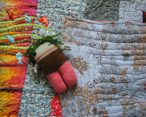A cuddly toy with green eyes, pink legs and a huge smile can turn out to be quite a companion for you or your kids. The toy is 7.5” tall, and is hand knit from soft yarn and stuffed with polyester fiberfill. An adorable toy waiting for someone to find him a home.